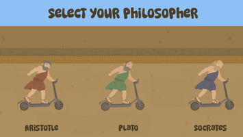 A comical rail racing arcade where great philosophers battle it out for the ultimate argument... on a scooter